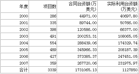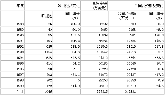 表1:1988年-1999年山東省利用臺(tái)資情況
