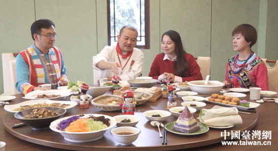 著名滇菜大師楔煒(左二)介紹云南美食。(圖片來源:云南省臺辦宣傳處)