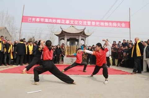 在祭祀大會上,臺灣及海外梅花拳弟子們輪流上場,切磋梅花拳技藝,現(xiàn)場展示梅花拳絕技。(中國臺灣網(wǎng)、安陽市臺辦聯(lián)合報(bào)道)