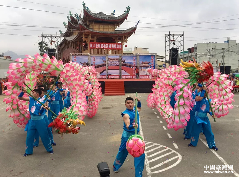 當(dāng)天,臺(tái)灣南投縣集集鎮(zhèn)舉行了“圓橋”暨交接儀式。(圖片來(lái)源:浙江省臺(tái)辦)