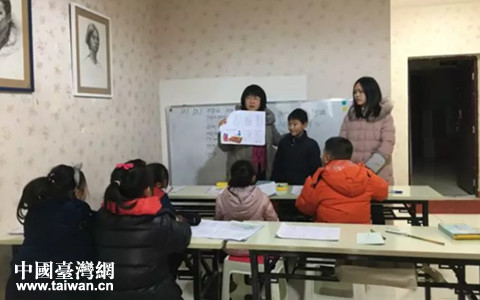 金慧臣教授孩子們英文學(xué)習(xí)。(圖片來(lái)源:四川省臺(tái)辦)