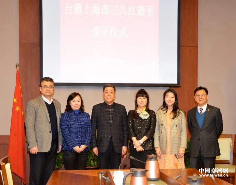 3月8日上午,上海市臺(tái)辦舉辦臺(tái)籍上海市三八紅旗手頒證儀式。市臺(tái)辦主任李文輝(左三)出席儀式。(圖片來(lái)源:上海市臺(tái)辦)