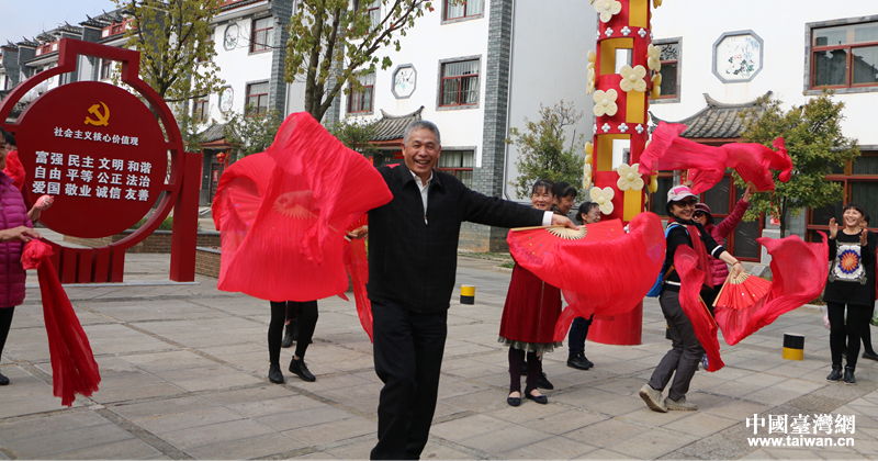 學(xué)跳扇子舞。(圖片來(lái)源:玉溪市紅塔區(qū)委臺(tái)辦)