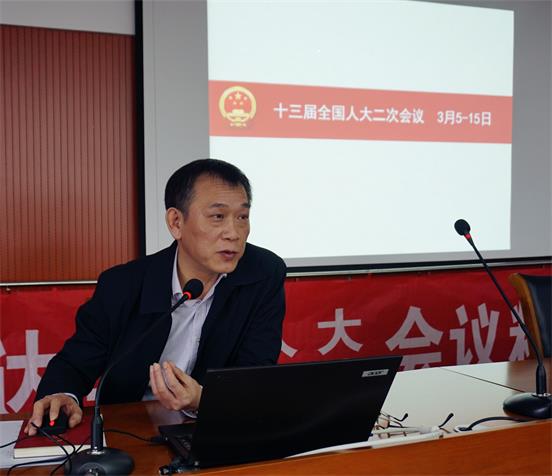 鄒振球從會議概況、對臺工作、人大臺灣代表團活動等方面,對全國“兩會”特別是十三屆全國人大二次會議情況作了詳細介紹。他結(jié)合參會經(jīng)歷,重點介紹了中共中央政治局常委、全國政協(xié)主席汪洋,國務(wù)委員、外交部部長王毅,中央臺辦、國務(wù)院臺辦主任劉結(jié)一參加臺灣代表團審議時的情況。他還生動地講述了自己在“兩會”期間接受媒體采訪,特別是鳳凰衛(wèi)視直播專訪時的情景。此外,關(guān)于嚴肅會紀(jì)、代表風(fēng)采等會議花絮的介紹,也讓大家從多角度了解了“兩會”實況。鄒振球指出,這次全國“兩會”是在新中國成立70周年,在決勝全面建成小康社會、實現(xiàn)第一個百年奮斗目標(biāo)的關(guān)鍵時期召開的一次十分重要的會議,大家要認真學(xué)習(xí)領(lǐng)會貫徹習(xí)近平總書記在全國“兩會”上的重要講話和全國“兩會”精神,切實把思想和行動統(tǒng)一到黨中央決策部署要求上來,為促進兩岸經(jīng)濟社會融合發(fā)展和兩岸關(guān)系和平發(fā)展作出應(yīng)有的貢獻。劉忠斌重點介紹了人大江蘇代表團的主要活動情況,以及該團學(xué)習(xí)習(xí)近平總書記參加內(nèi)蒙古、甘肅、河南代表團審議時重要講話精神的情況。