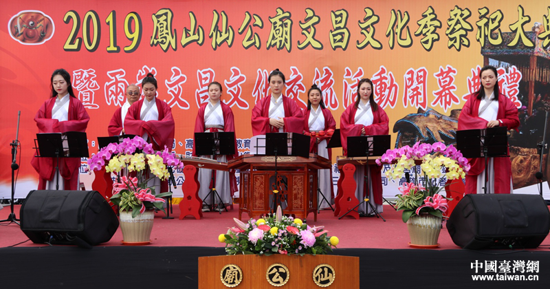 中國(guó)臺(tái)灣網(wǎng)4月3日訊 3月29日至4月1日,為期四天的“2019年兩岸文昌文化季交流活動(dòng)”在高雄舉行,包括洞經(jīng)古樂(lè)團(tuán)在內(nèi)的四川梓潼文昌文化交流團(tuán)一行23人,參加了開(kāi)幕典禮、祭祀大典,并進(jìn)行兩場(chǎng)洞經(jīng)音樂(lè)表演以及校園巡禮。