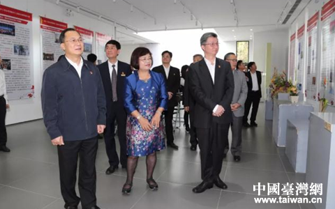 廣州市委臺辦主任曾衛(wèi)東同志陪同市委常委、統(tǒng)戰(zhàn)部長盧一先同志和臺灣苗栗縣大湖鄉(xiāng)鄉(xiāng)長胡娘妹觀看展覽。(圖片來源:廣州市臺辦宣傳交流處)