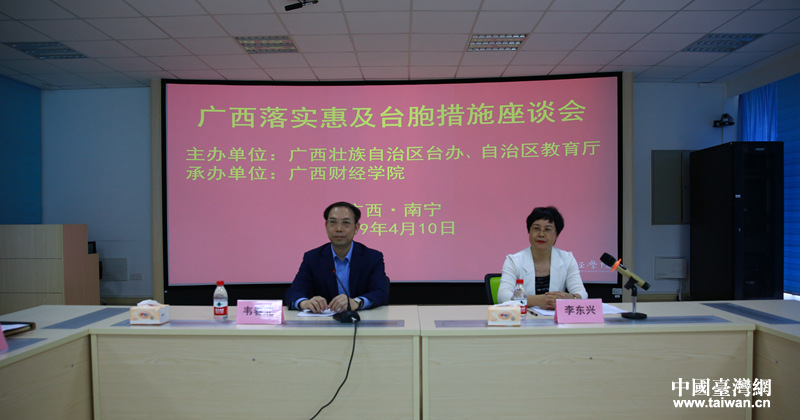 4月10日上午,廣西落實(shí)惠及臺(tái)胞措施座談會(huì)。(圖片來(lái)源:廣西臺(tái)辦)