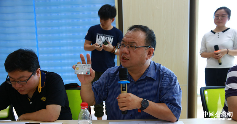 侯博士介紹辦理公務(wù)卡的體驗(yàn)和感受。(圖片來(lái)源:廣西臺(tái)辦)