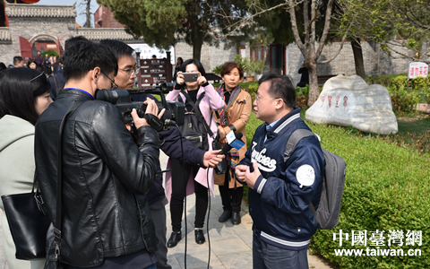 臺灣指傳媒社長游勝鈞接受河南省電視臺等內(nèi)地媒體采訪。。(圖片來源:周口市臺辦)