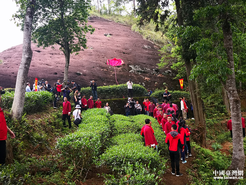 一系列祭拜儀式后,兩岸媒體跟隨茶農(nóng)上山,親身體驗(yàn)采摘新鮮巖茶的樂趣,并前往大紅袍“母樹”所在地,尋巖茶名樅之根。