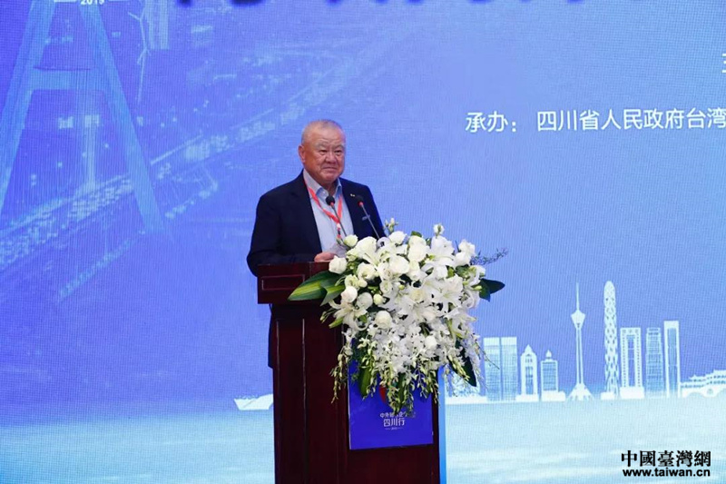 臺灣工商協(xié)進會理事長和臺玻集團董事長林伯豐致辭。(圖片來源:四川臺辦)