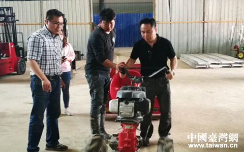 在貴州騰博有限公司體驗農(nóng)機(jī)具操作。(圖片來源:貴州省臺辦)