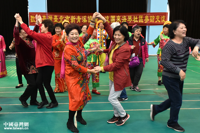 社區(qū)舉辦了專場文藝演出,海琴社區(qū)百姓藝術(shù)團的成員表演了葫蘆絲、腰鼓、舞蹈等兩岸民眾耳熟能詳?shù)墓?jié)目,“愛我中華”的音樂響起,全場響起一陣陣掌聲。和著歡快的樂曲,交流團成員與社區(qū)居民手拉手、肩并肩,共同載歌載舞,把交流活動推向了高潮,現(xiàn)場洋溢著濃濃的兩岸同胞親情。(中國臺灣網(wǎng)、山東省臺港澳辦聯(lián)合報道)