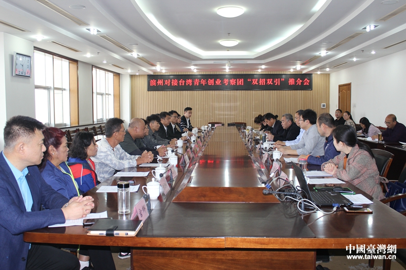 濱州對接臺灣青年創(chuàng)業(yè)考察“雙招雙引”推介會。(圖片來源:濱州市委統(tǒng)戰(zhàn)部)