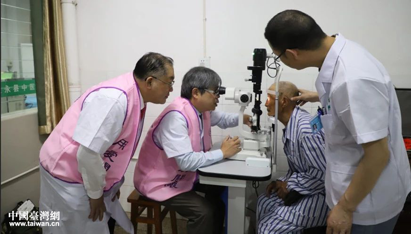 臺灣愛盲協(xié)會專家為患者做術(shù)前檢查。(圖片來源:瀘州市臺辦)