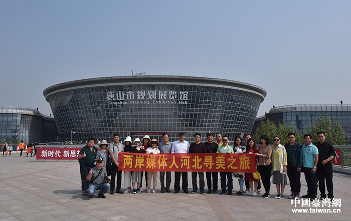“尋美之旅——兩岸媒體河北巡禮”新聞交流活動日前舉辦。兩岸媒體人在唐山市規(guī)劃展覽館前合影。(來源:河北省臺辦)