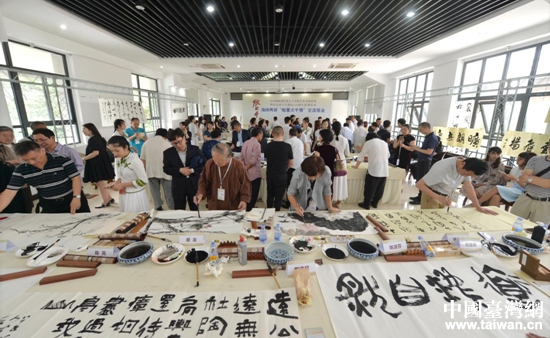 兩岸書畫家丹青溢彩、翰墨飄香,書寫盛世華章。(圖片來源:四川省臺(tái)辦)