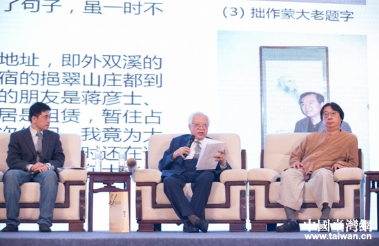 歐豪年教授(右二)緬懷他與張大千的忘年之交。(圖片來源:四川省臺(tái)辦)