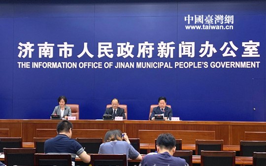 濟南市委市政府召開(兩岸新舊動能轉換高峰論壇)新聞發(fā)布會。(圖片來源:濟南市臺港澳辦)