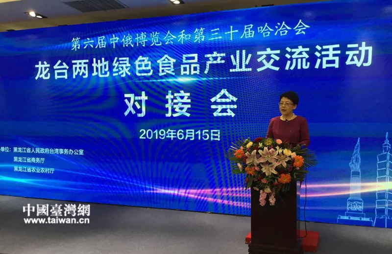 中國臺灣網(wǎng)6月17日訊 6月15日上午,由黑龍江省臺辦、黑龍江省商務(wù)廳、黑龍江省農(nóng)業(yè)農(nóng)村廳主辦的六屆中俄博覽會和第三十屆哈洽會—龍臺綠色食品產(chǎn)業(yè)交流活動對接會在哈爾濱華旗飯店舉行。來自臺灣中華青年企業(yè)家協(xié)會、臺東縣中小企業(yè)家協(xié)會的臺灣嘉賓,黑龍江省綠色食品企業(yè)代表共計70人參加會議。
