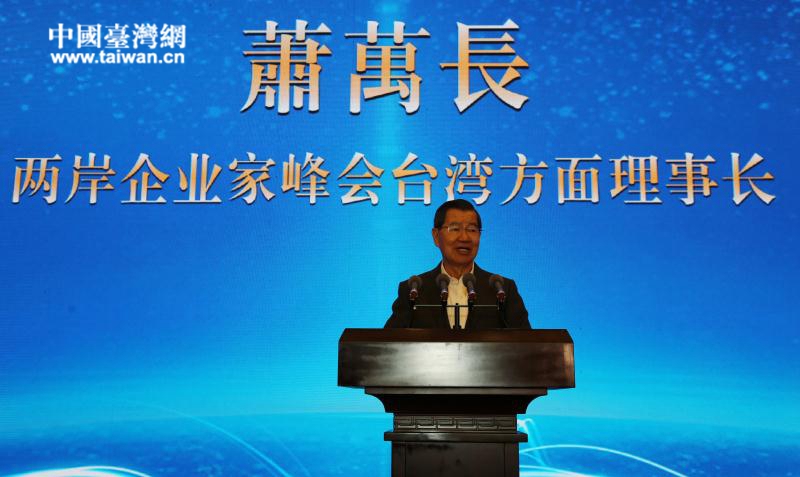 兩岸企業(yè)家峰會臺灣方面理事長蕭萬長致辭。(圖片來源:山東省臺港澳辦)