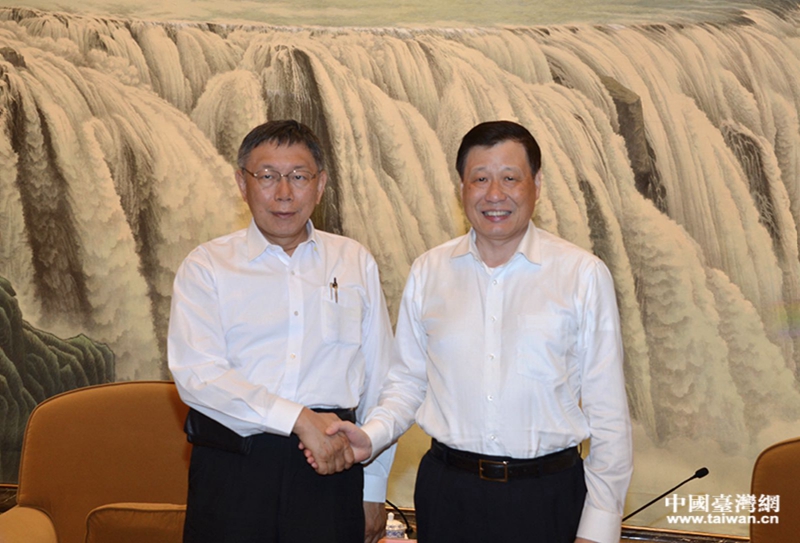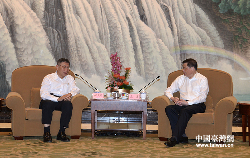 上海市市長應(yīng)勇7月3日下午會見了率團(tuán)來滬參加“2019上海臺北城市論壇”的臺北市市長柯文哲一行。(中國臺灣網(wǎng)發(fā))