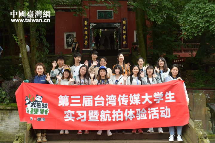 第三屆臺灣傳媒大學生實習暨航拍體驗活動來到蒙頂山(圖片來源:四川省臺辦)