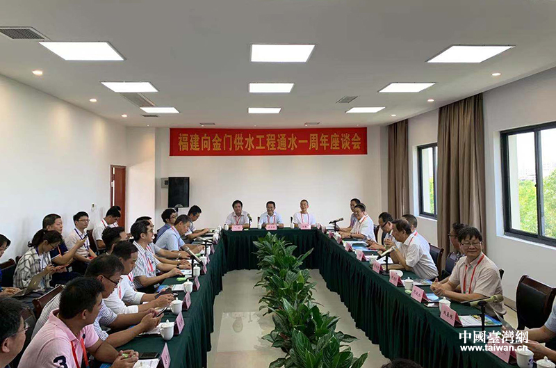 通水一周年座談會(huì)上,兩岸業(yè)主代表通報(bào)了通水一年來的情況,相關(guān)專家代表就金門供水經(jīng)驗(yàn)和如何更好地推動(dòng)兩岸“新四通”工作做交流分享。