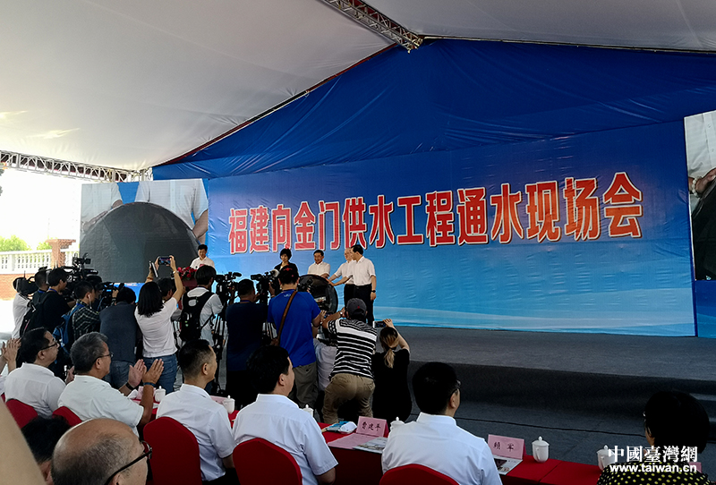 福建向金門供水通水一周年活動(dòng)在福建晉江舉行,兩岸通水交流中心同期揭牌成立。(來源:福建省臺(tái)港澳辦)