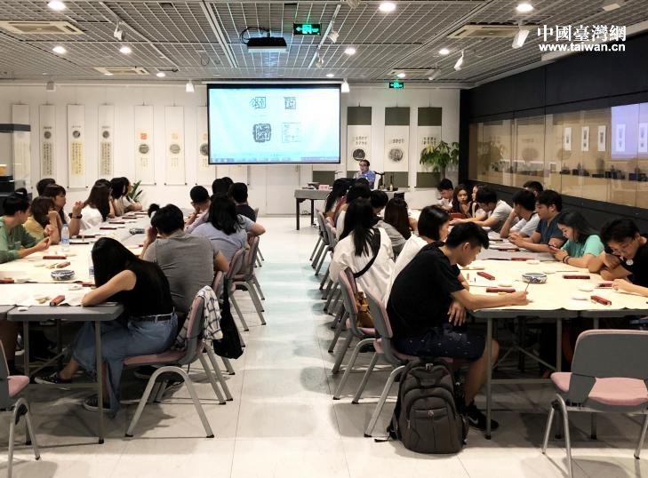 中國臺灣網(wǎng)8月13日杭州訊 “2019中華文化研習(xí)營”活動期間,杭州市臺辦組織42位臺灣大學(xué)生問學(xué)西泠印社美術(shù)館,體驗篆刻藝術(shù)魅力。