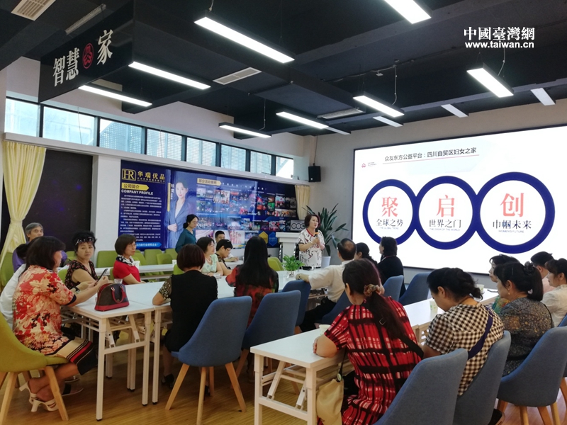 參訪團(tuán)與自貿(mào)區(qū)婦女之家優(yōu)秀女企業(yè)家座談交流(圖片來(lái)源:四川省臺(tái)辦)