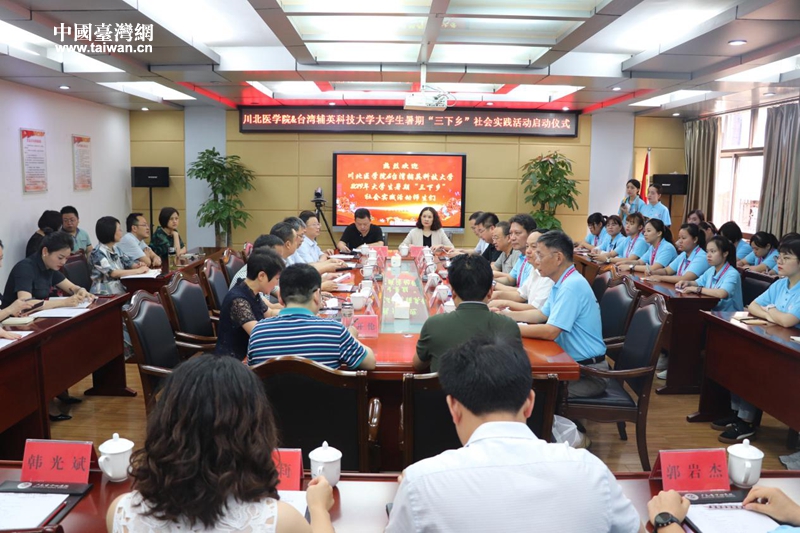 臺灣師生在廣元市中心醫(yī)院參加“三下鄉(xiāng)”社會實踐活動啟動儀式(圖片來源:廣元市臺辦)