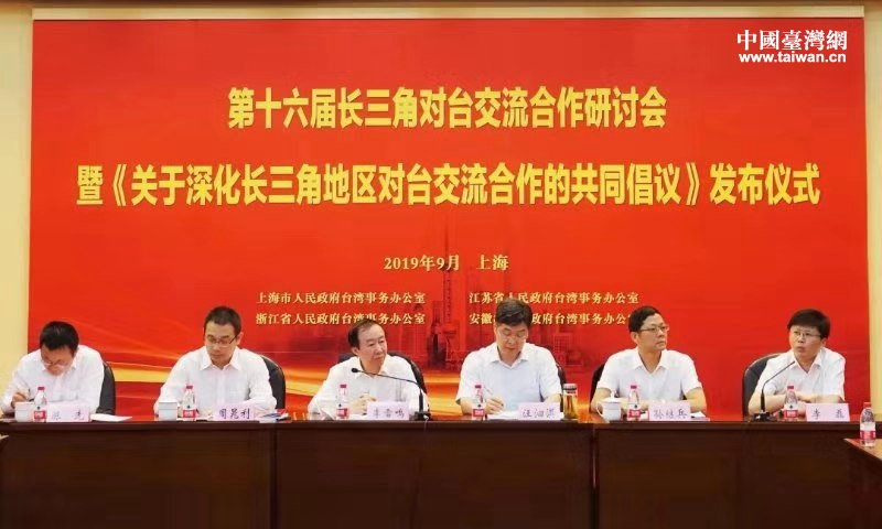 第十六屆長三角對臺交流合作研討會在上海舉行。(圖片來源:上海市臺辦)