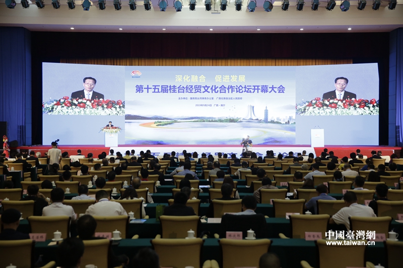 2019年9月24日,第十五屆桂臺(tái)經(jīng)貿(mào)文化合作論壇在廣西南寧舉行(圖片來(lái)源:廣西自治區(qū)臺(tái)辦)