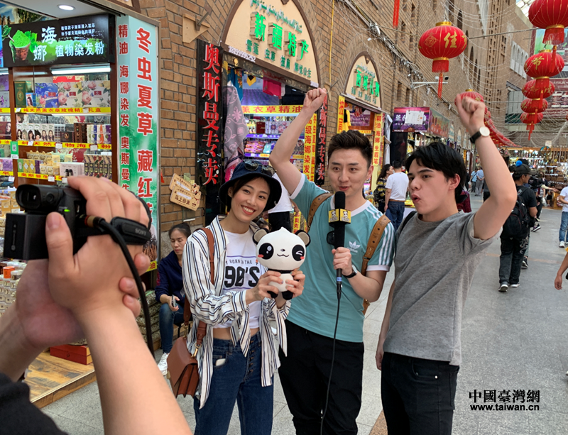 兩岸青年在新疆國際大巴扎拍攝(圖片來源:新疆臺(tái)辦)