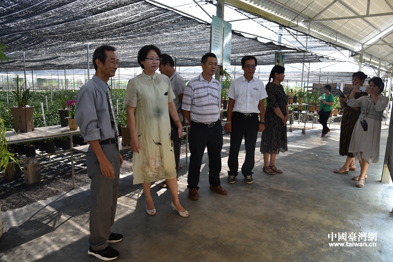葉國斌(左一)介紹蘭花品類(圖片來源:廣西玉林市臺辦)