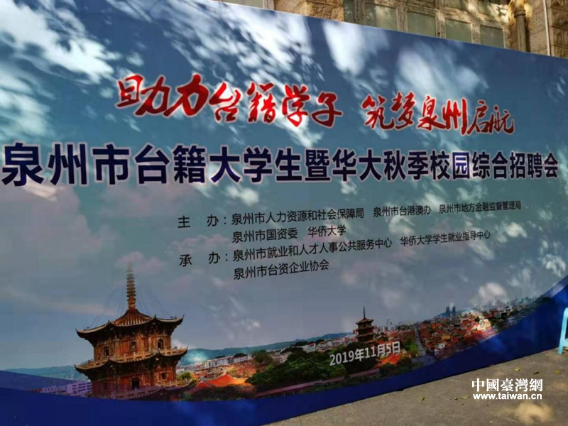 招聘會由泉州市人社局、臺港澳辦、金融局、國資委、華僑大學(xué)主辦,泉州市就業(yè)人才中心、華大就業(yè)中心、泉州市臺資企業(yè)協(xié)會承辦。(中國臺灣網(wǎng)、福建省臺港澳辦、泉州市臺港澳辦聯(lián)合報道)