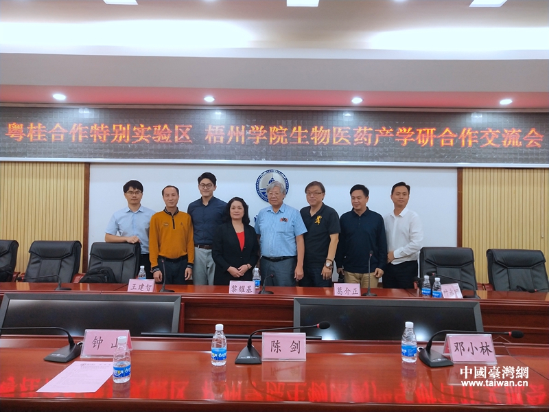 黎耀基一行與梧州學院相關(guān)負責人開展生物醫(yī)藥產(chǎn)學研合作交流座談(圖片來源:廣西梧州市臺辦)