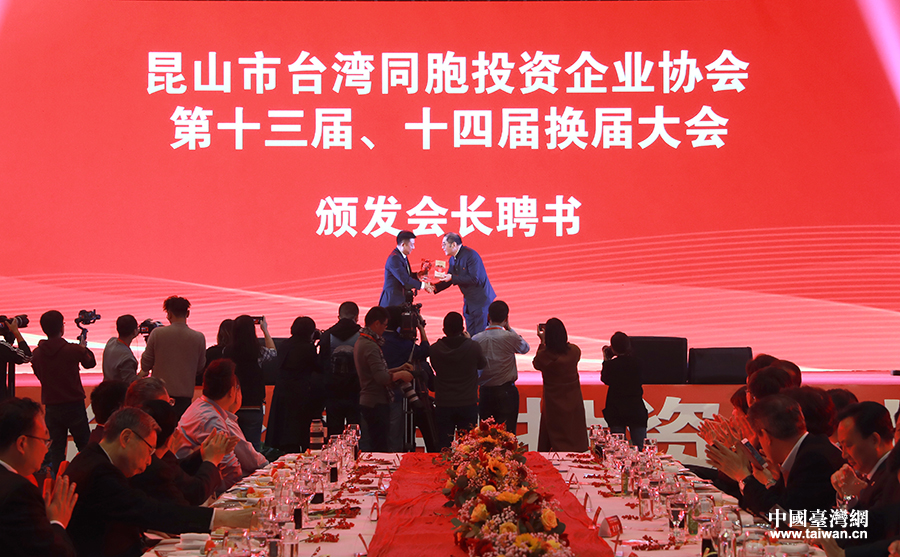 昆山市臺灣同胞投資企業(yè)協(xié)會第十三屆、第十四屆換屆大會舉行。(中國臺灣網(wǎng) 陳佳慧 攝)