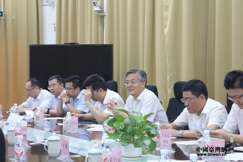南寧市市長周紅波參加臺資企業(yè)現(xiàn)場辦公協(xié)調(diào)會。(圖片來源:廣西南寧市臺辦)