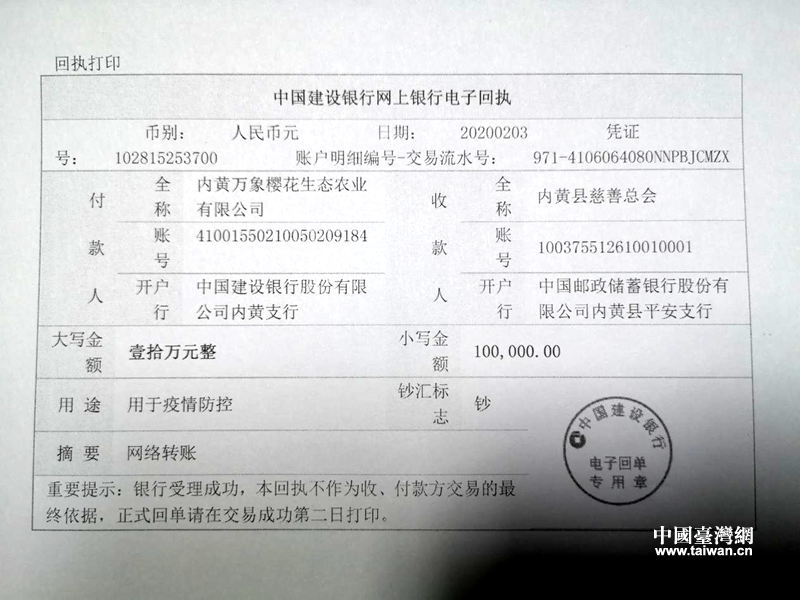 河南內(nèi)黃籍臺(tái)商人在島內(nèi)憂心大陸 捐款10萬(wàn)元支援疫情防控