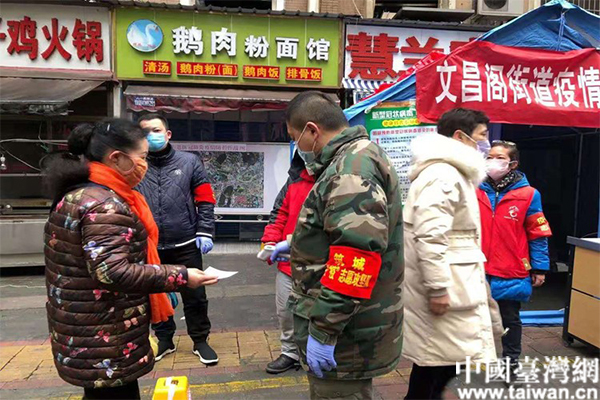 中國臺灣網(wǎng)2月18日訊 根據(jù)貴陽市委、云巖區(qū)委應對新型冠狀病毒肺炎疫情工作領導小組統(tǒng)一部署。近日,貴陽市臺辦、貴陽市老年大學、貴陽市節(jié)約用水辦公室、貴陽市第二中學的4名黨員志愿者來到文昌閣辦事處,建立起一個抗疫一線臨時黨支部,赴轄區(qū)開展疫情封控點值守、抗疫防護宣傳、車輛排查、體溫檢測等工作。