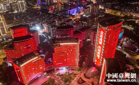 杭州臺企為抗擊疫情制作的燈光秀。 (中國臺灣網(wǎng) 發(fā))