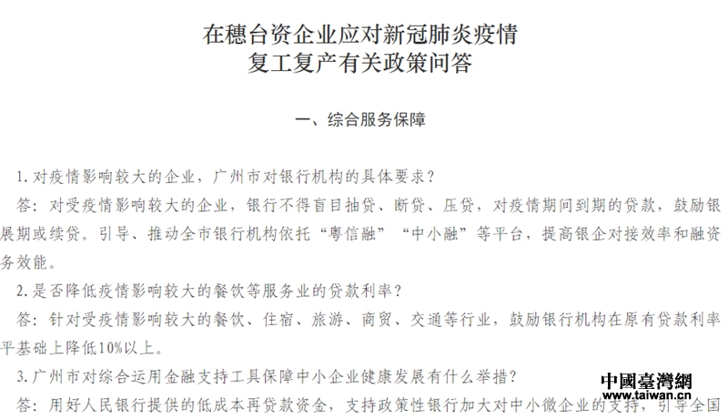 附:《在穗臺資企業(yè)應對新冠肺炎疫情復工復產(chǎn)有關(guān)政策問答》節(jié)選: