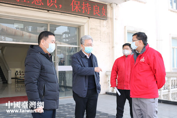 2月20日,遼陽(yáng)市委常委、統(tǒng)戰(zhàn)部部長(zhǎng)高天宇深入位于燈塔市西大窯鎮(zhèn)的臺(tái)泥(遼寧)水泥有限公司進(jìn)行調(diào)研,檢查指導(dǎo)疫情防控和復(fù)工復(fù)產(chǎn)工作。(圖片來源:遼陽(yáng)市臺(tái)辦)