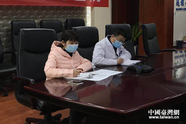 陶怡秀(左一)督導(dǎo)預(yù)檢分診人員全覆蓋體溫篩檢工作,并指導(dǎo)發(fā)熱患者就診流程與記錄資料。(圖片來源:陜西省臺聯(lián))