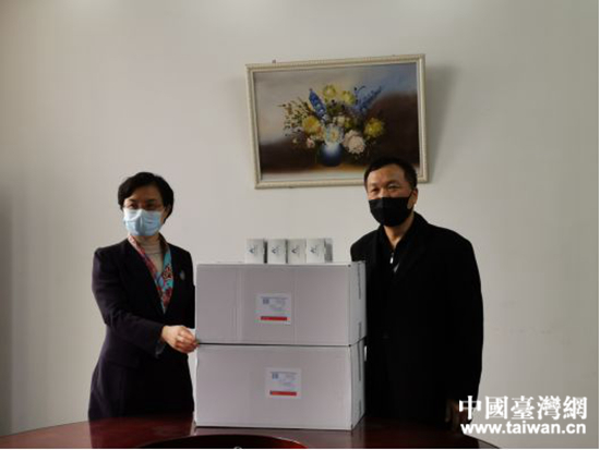 紹興市委常委葉衛(wèi)紅向紹興市臺(tái)協(xié)會(huì)贈(zèng)送口罩、額溫儀等防疫物資。 (中國(guó)臺(tái)灣網(wǎng) 發(fā))