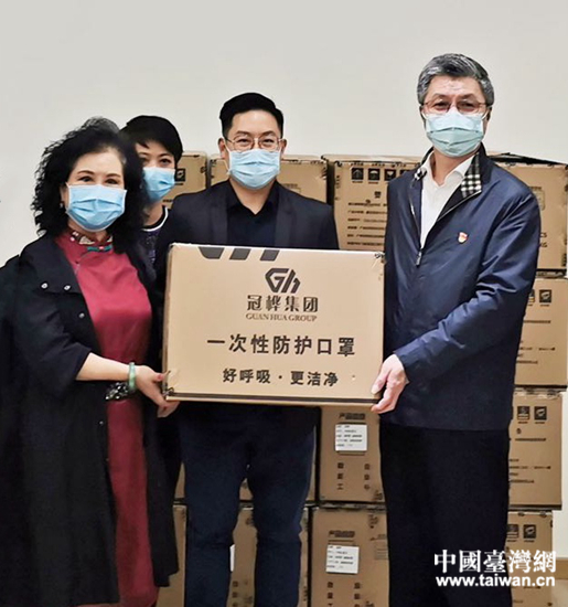 市臺辦、區(qū)臺辦,市臺聯和市臺協負責人與接收口罩的臺資企業(yè)代表合影。 (中國臺灣網 發(fā))