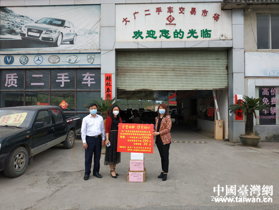 中國(guó)臺(tái)灣網(wǎng)3月2日訊 2月28日,廣西賀州市臺(tái)辦為賀州市梅林化工科技有限有限公司、廣西普克新能源材料有限公司、大廣二手車交易市場(chǎng)等復(fù)工臺(tái)企和在賀臺(tái)胞代表送去口罩3500個(gè),洗手液1500支,酒精消毒噴霧100支,攜手賀州臺(tái)企臺(tái)胞共抗新冠肺炎疫情。