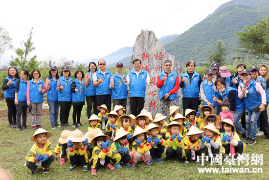 花蓮鄉(xiāng)親在“同心林”合影。 (中國臺灣網(wǎng) 發(fā))